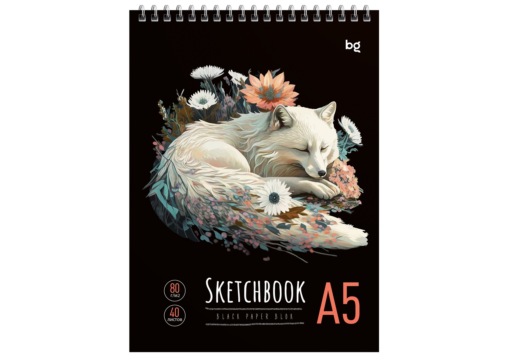 - Скетчбук BG СА540гр_58726 40л., А5 "Arctic fox", на гребне, черный блок, 80г/м2