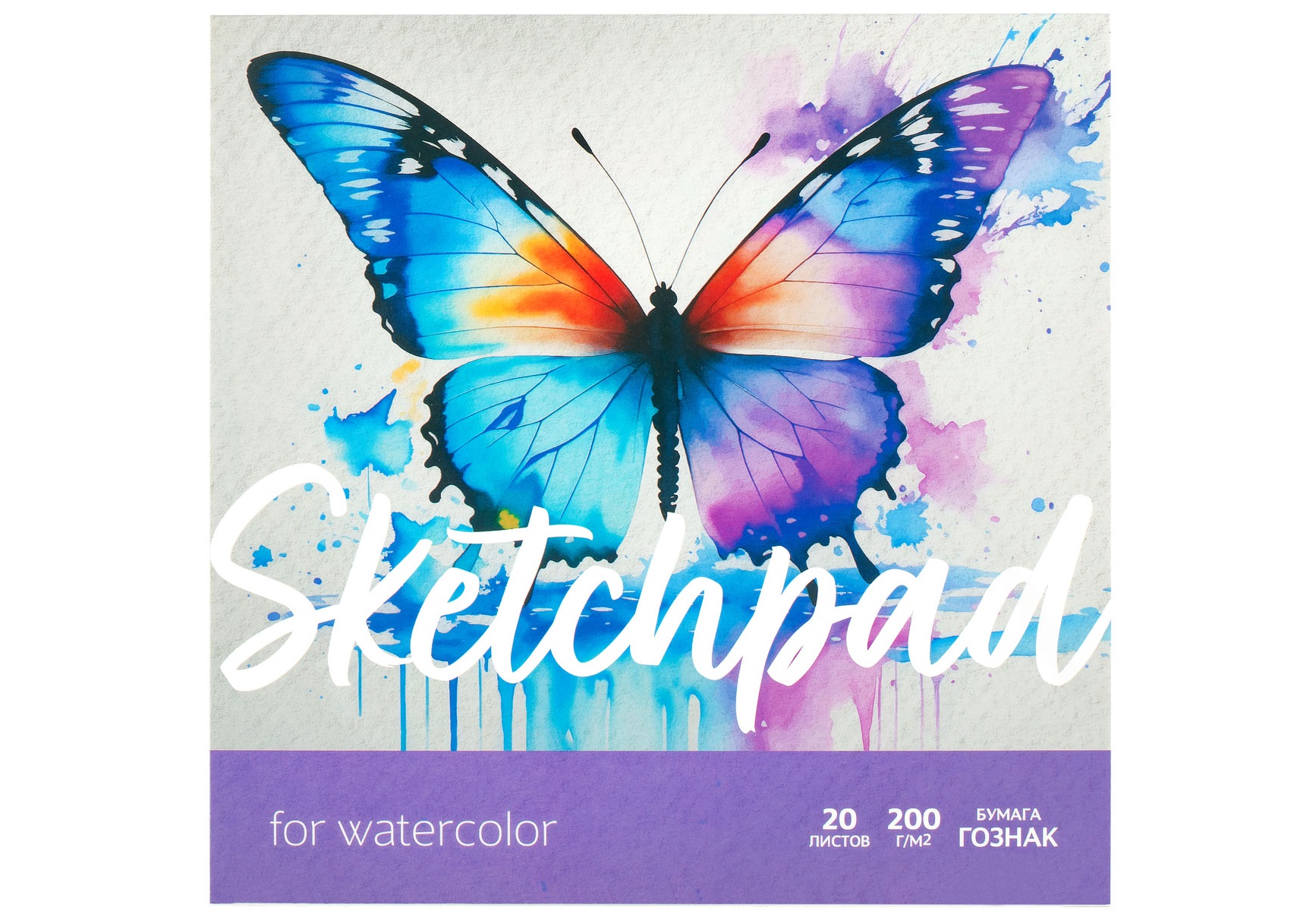 - Скетчбук BG Скв20ск_57147 для акварели, 20л., 200*200 "Бабочка", на склейке, глянцевая ламинация, 200г/м2, ГОЗНАК, среднее зерно