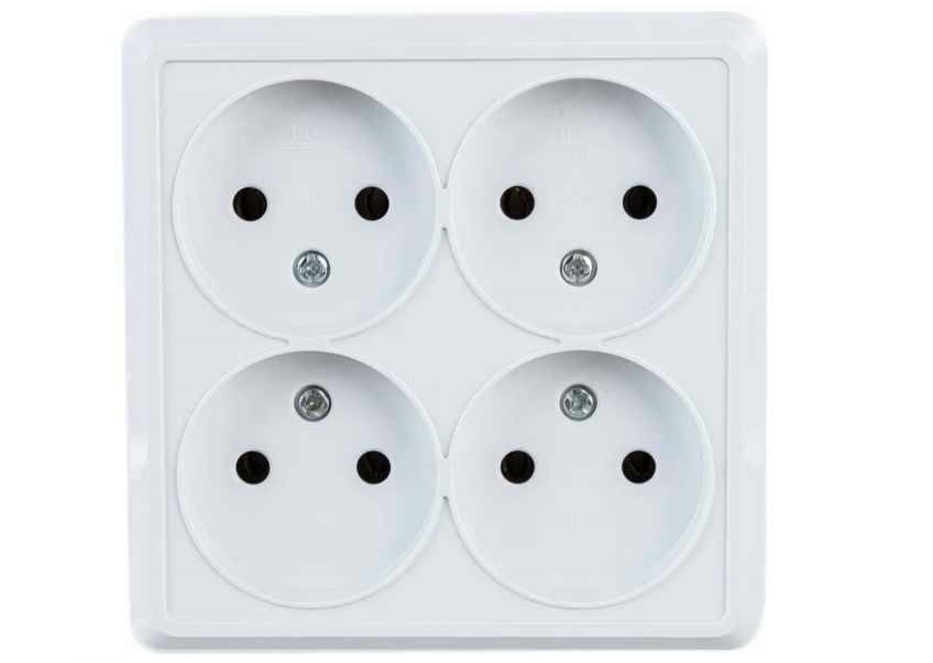 - Розетка 4 м ОП Олимп квадрат без заземл. белая 1164