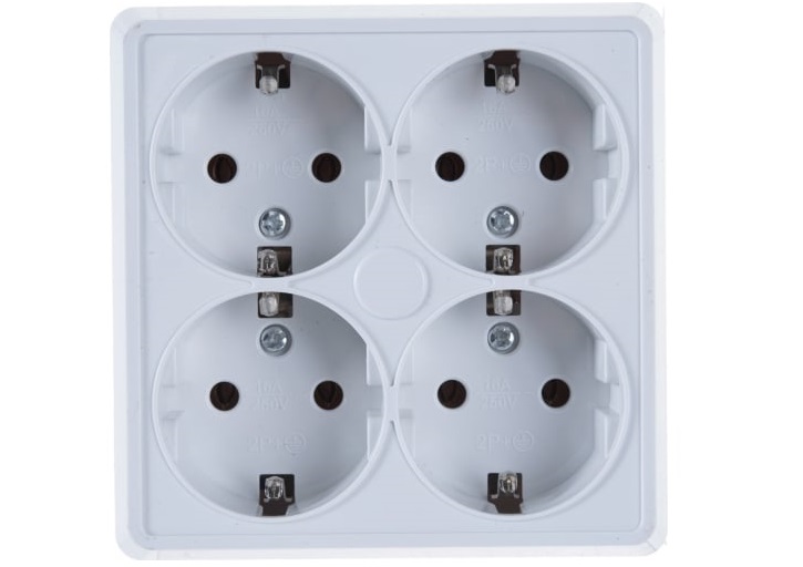 - Розетка 4 м ОП Олимп квадрат с заземл. белая 1165