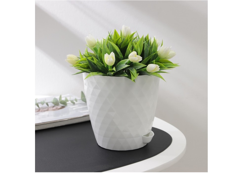 Кашпо цветочное 2,2л Лея М7928 белый с поддоном