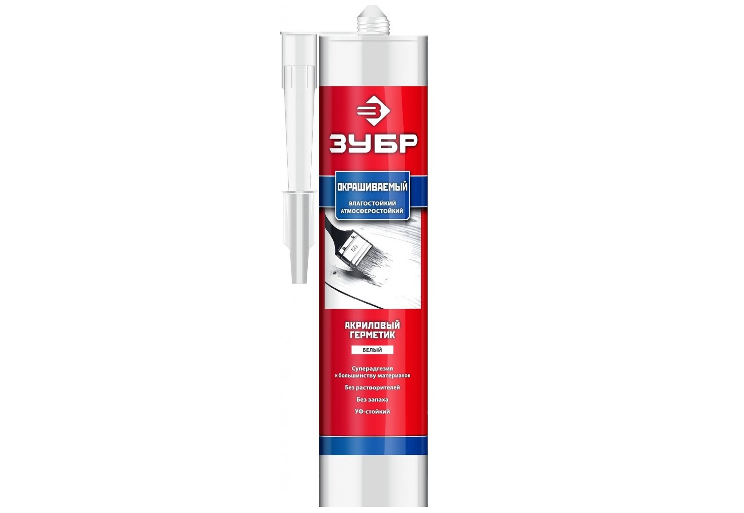- Герметик 280мл Зубр акриловый белый, универсальный 41231-0/6204