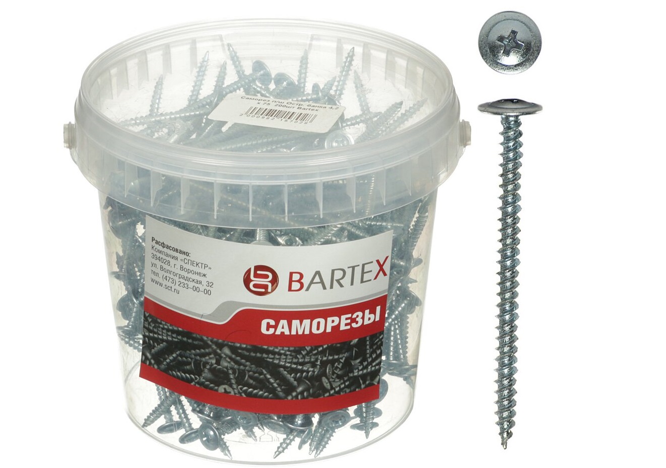 - Саморез универсальный 4,2*50 цинк с прессшайбой сверло 250шт в банке Bartex 0589