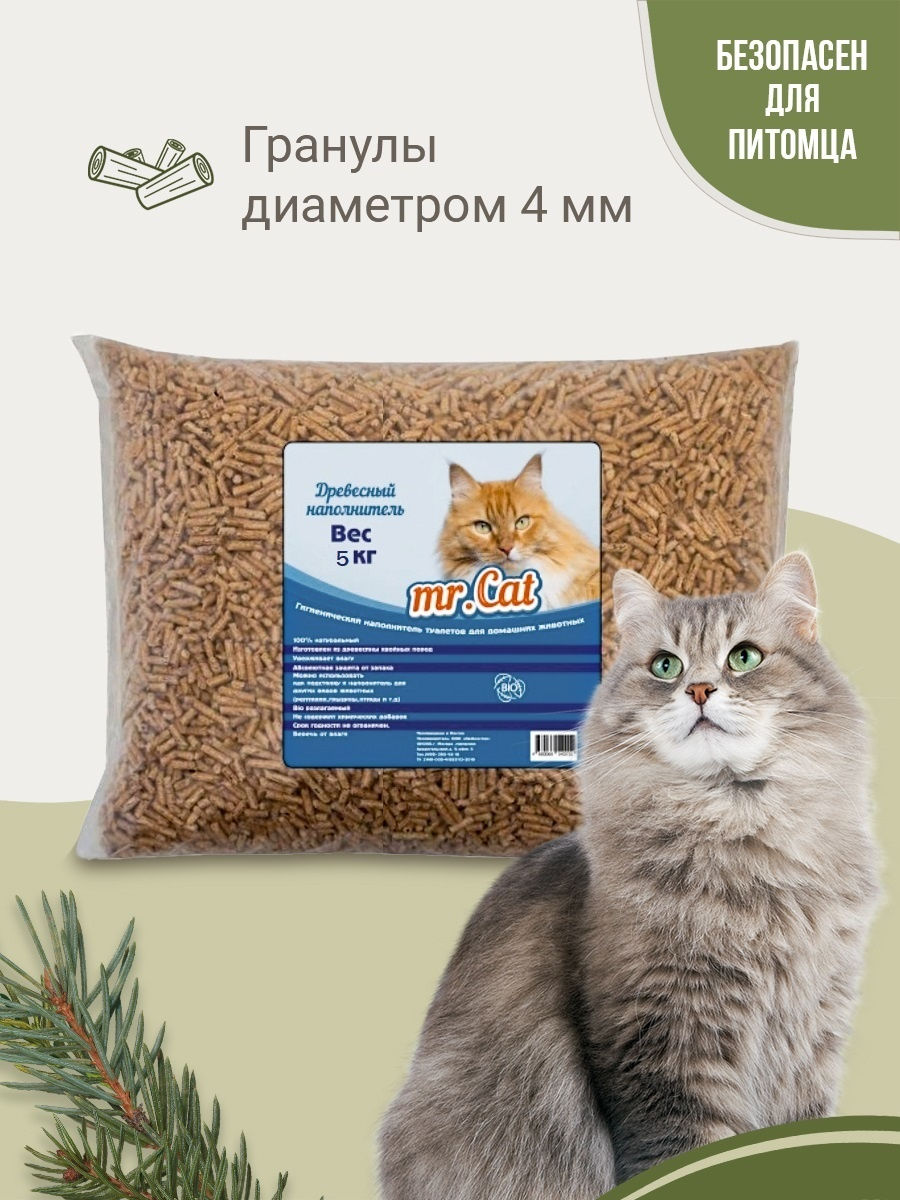 - Наполнитель для кошачего туалета Мистер Кет 5л древесный 8069