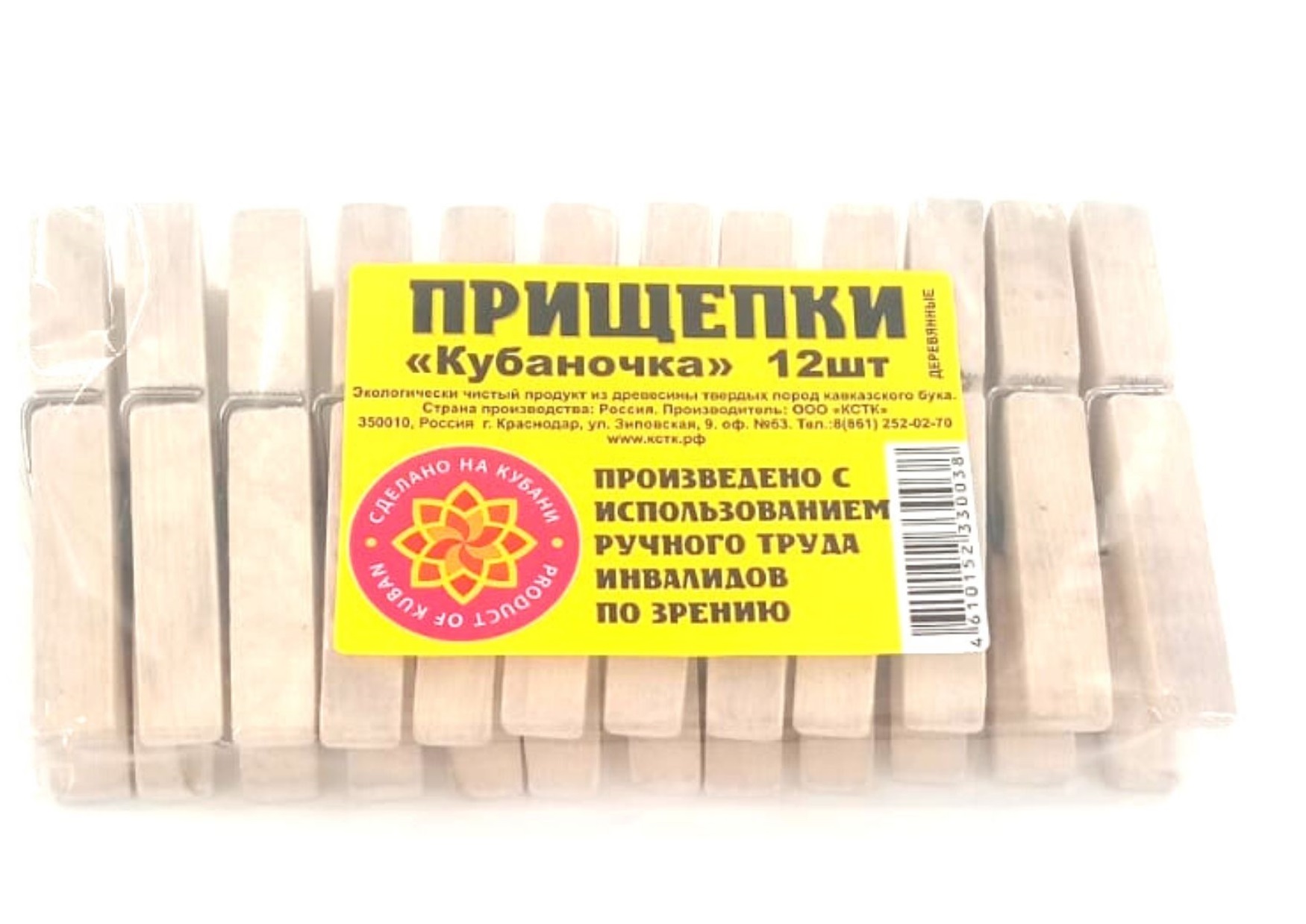 - Прищепки деревянные Кубаночка 12шт в п/п 0038