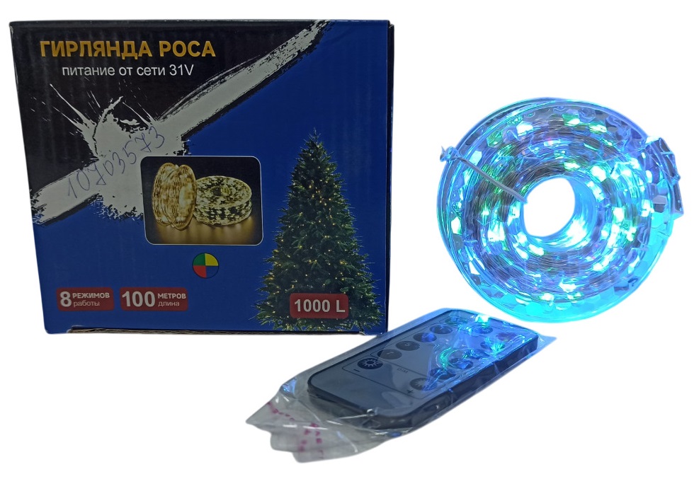 - Электрогирлянда проволока 100м колор 1000 ламп с пультом