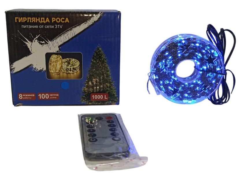 - Электрогирлянда проволока 100м синяя 1000ламп с пультом
