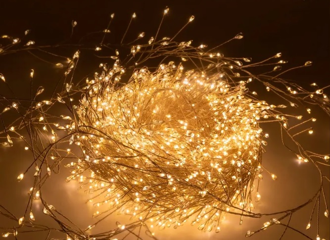 Электрогирлянда проволока 10м 100л Роса желтая от батареек