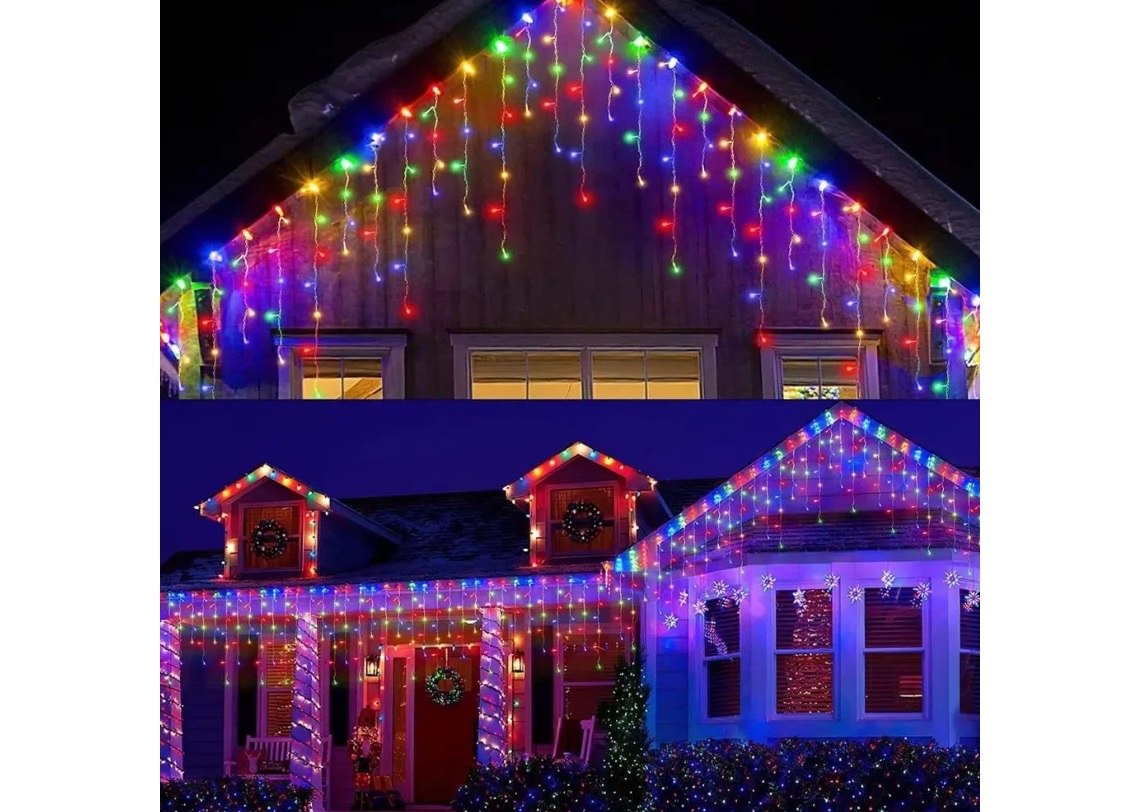 Электрогирлянда дождь звезда - месяц большая колор Бахрома в коробке