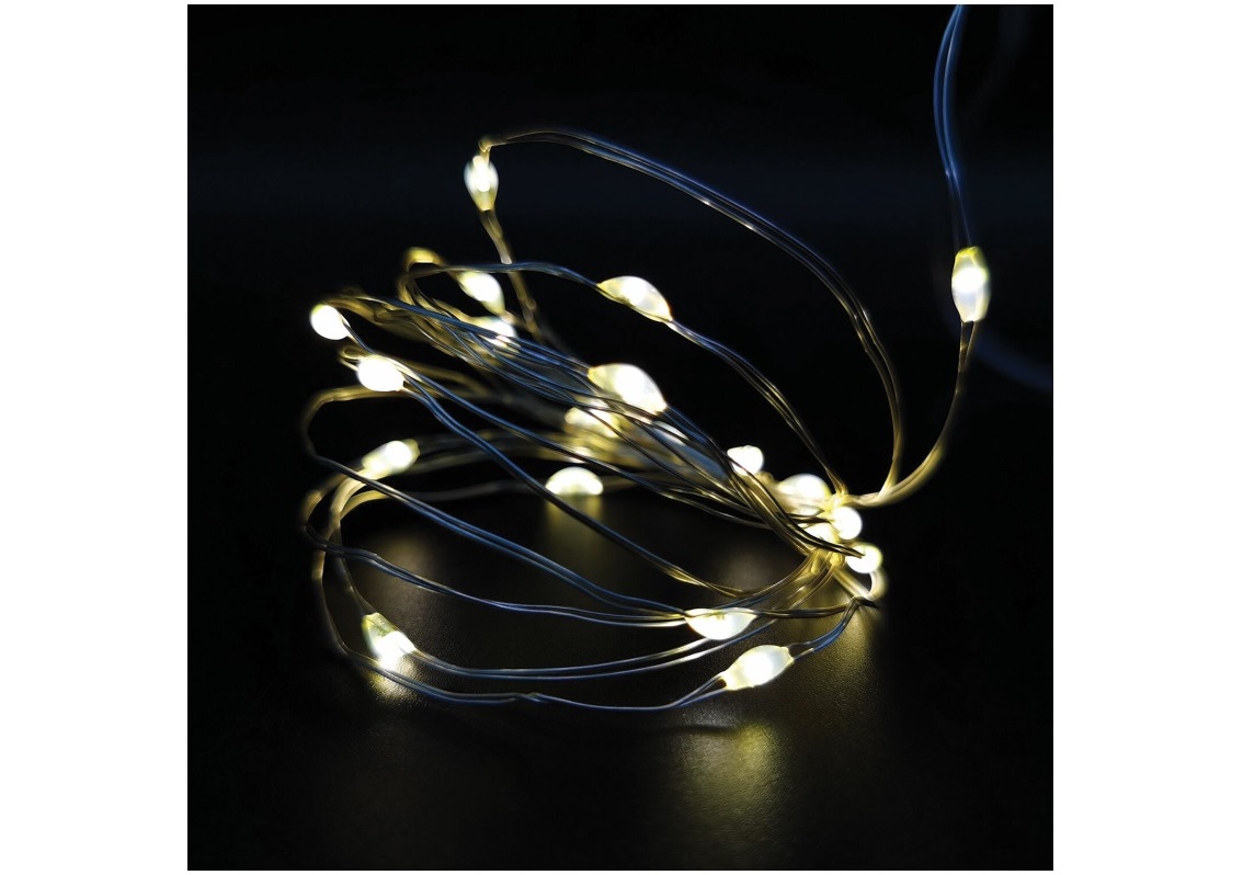 - Электрогирлянда проволока 10м 100л Роса желтая от батареек