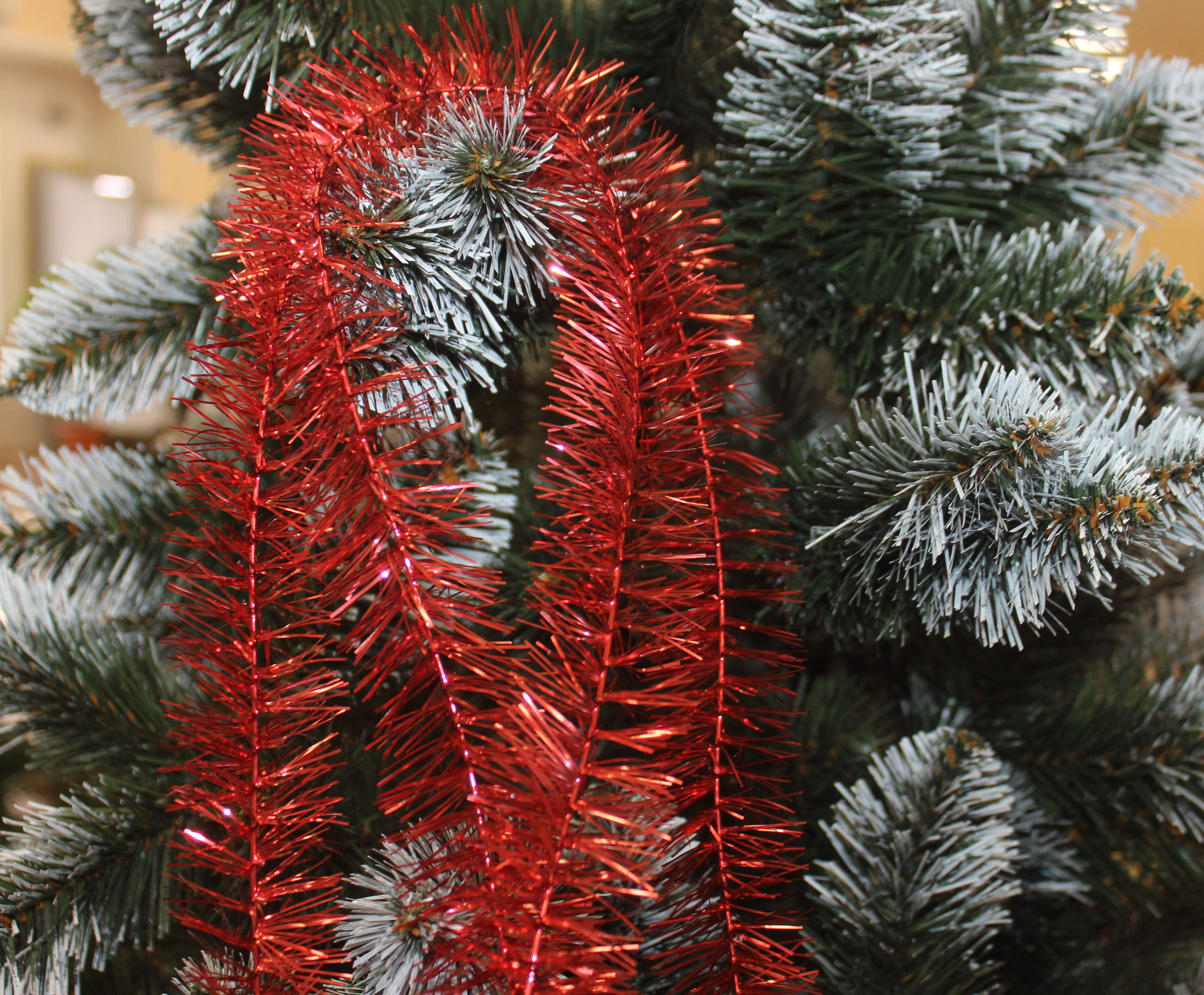 Мишура №5/H03А красная с серебрянным кончиком