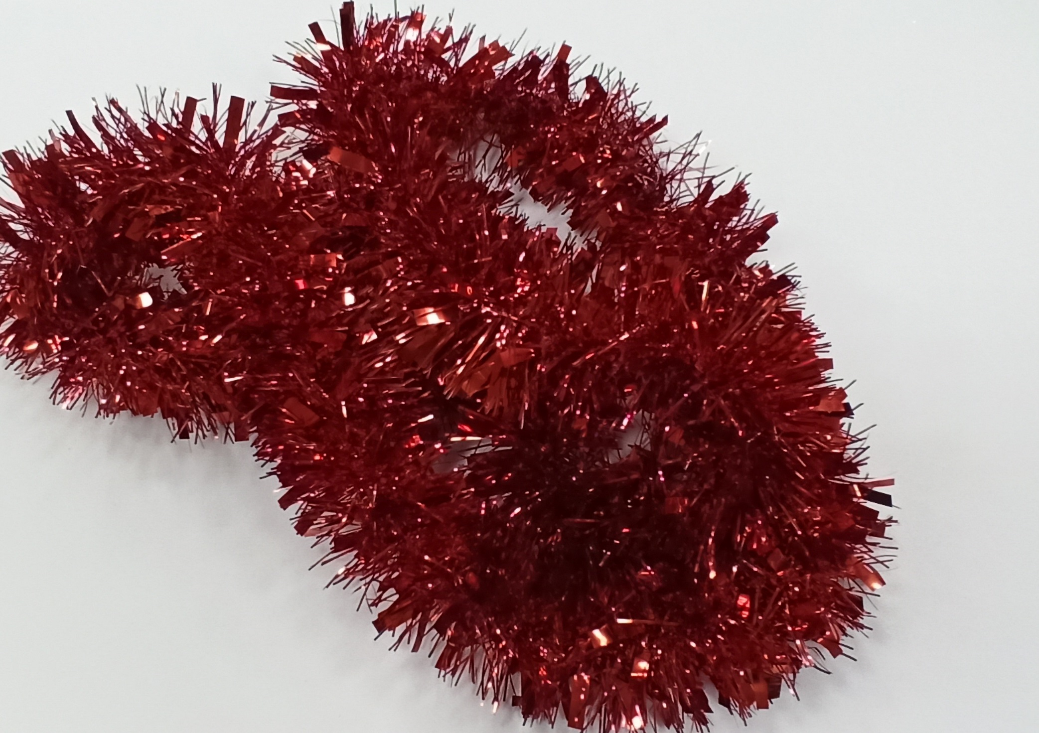 Мишура №10/H45 Малиновая широкая с Дедом Морозом