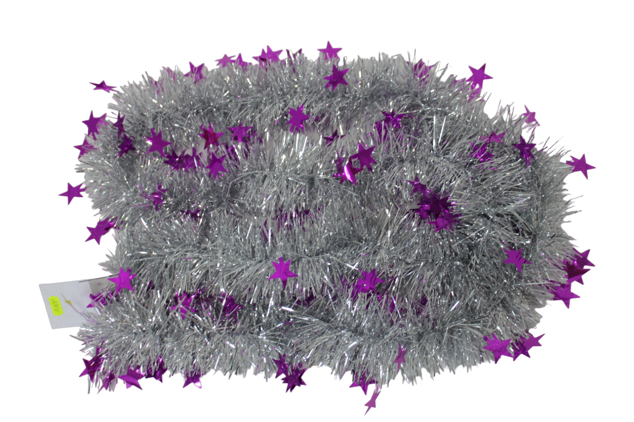 Мишура №10/H11 серебро с малиновой звездой