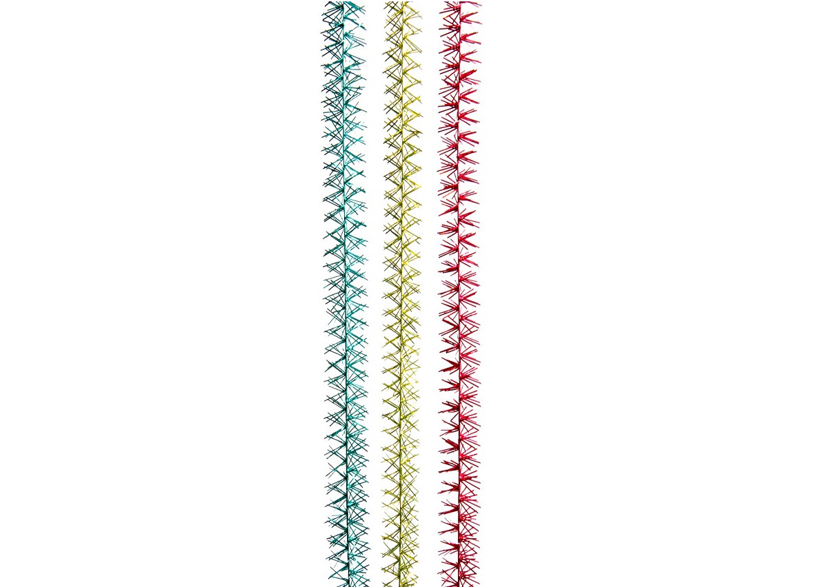Мишура №9/H15 Малиновая с белым кончиком широкая