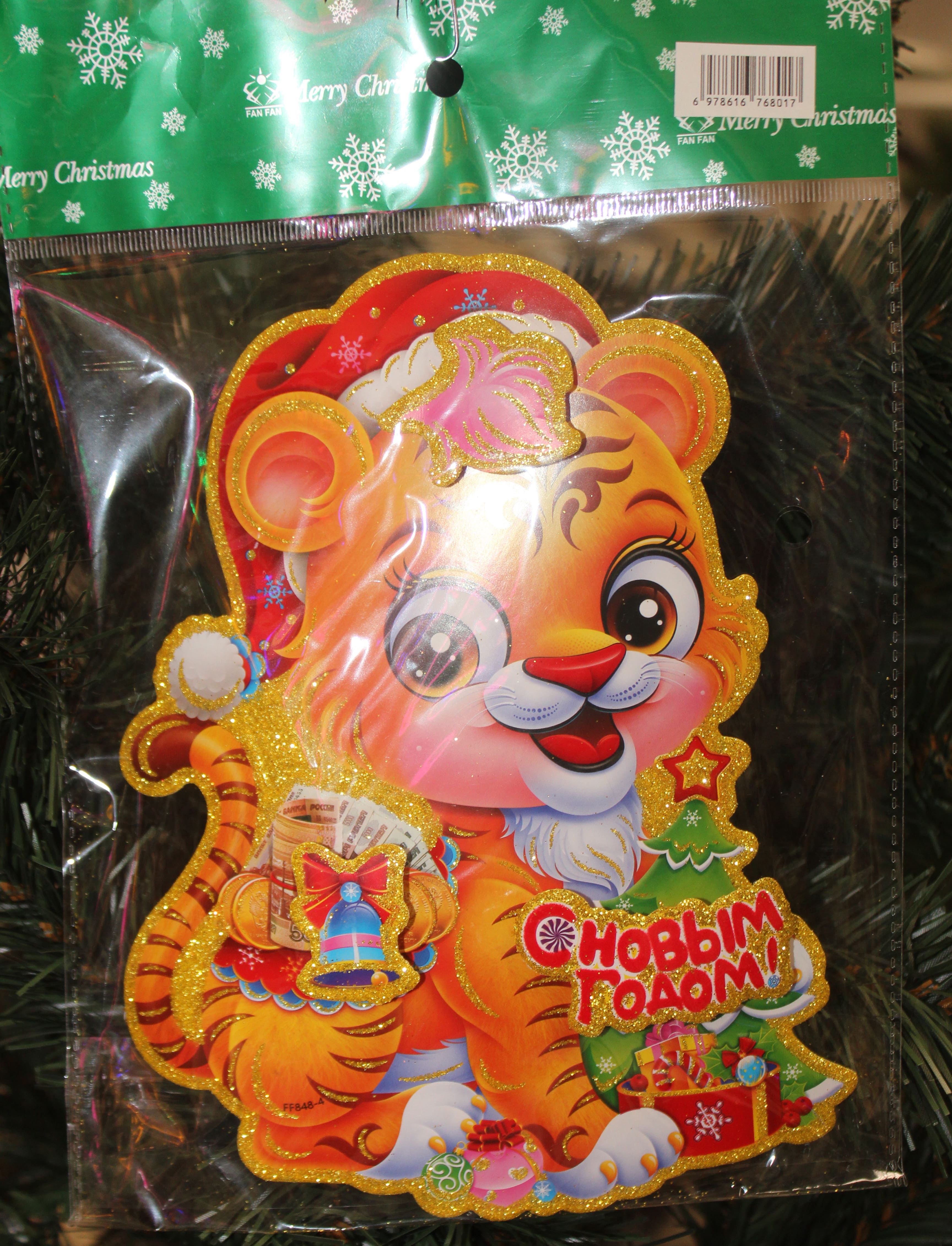 - Панно бумажное FF848-4 Тигр с елкой ср.