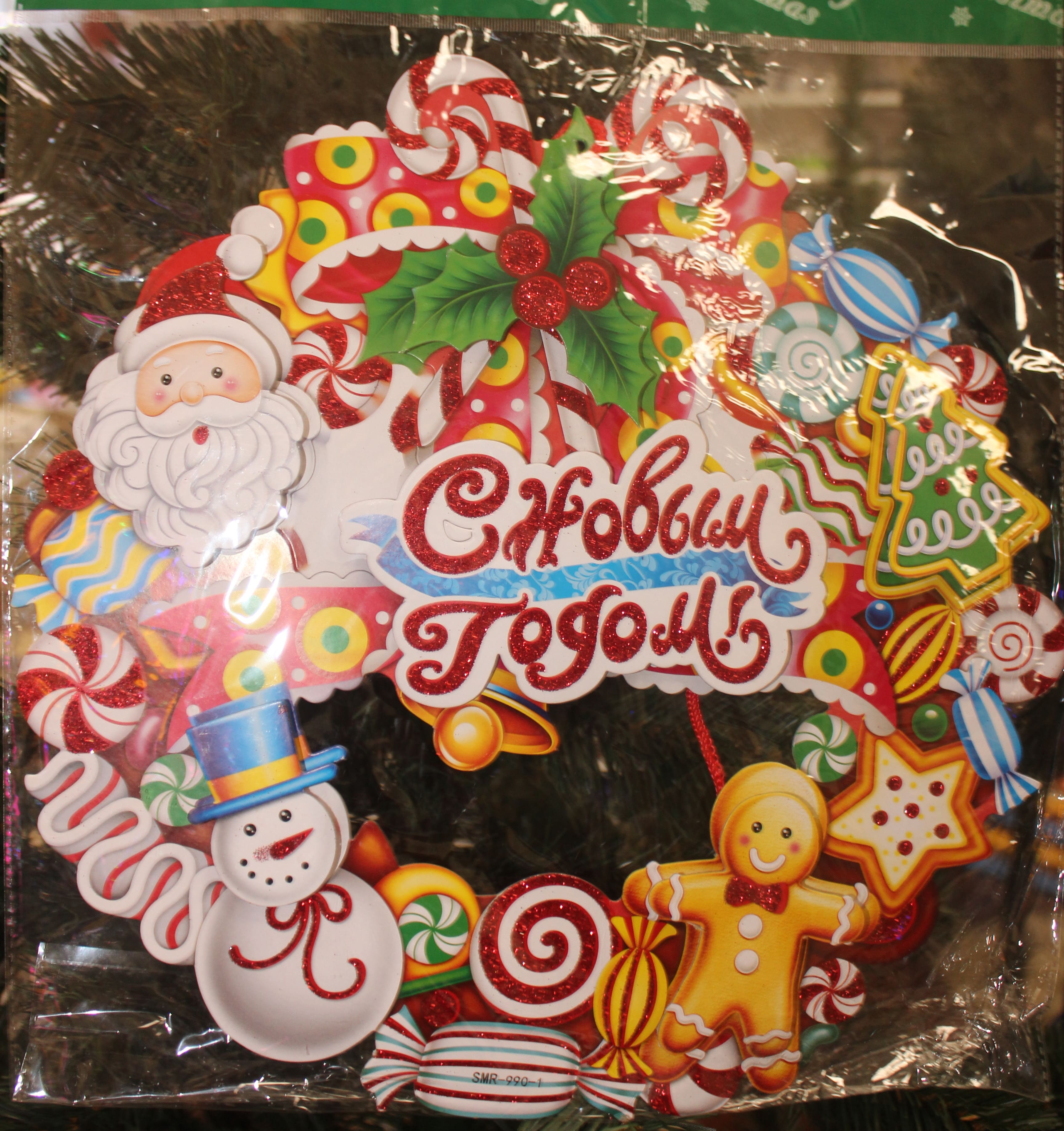 - Панно бумажное SMR-990-1 Венок С Новым годом бол.