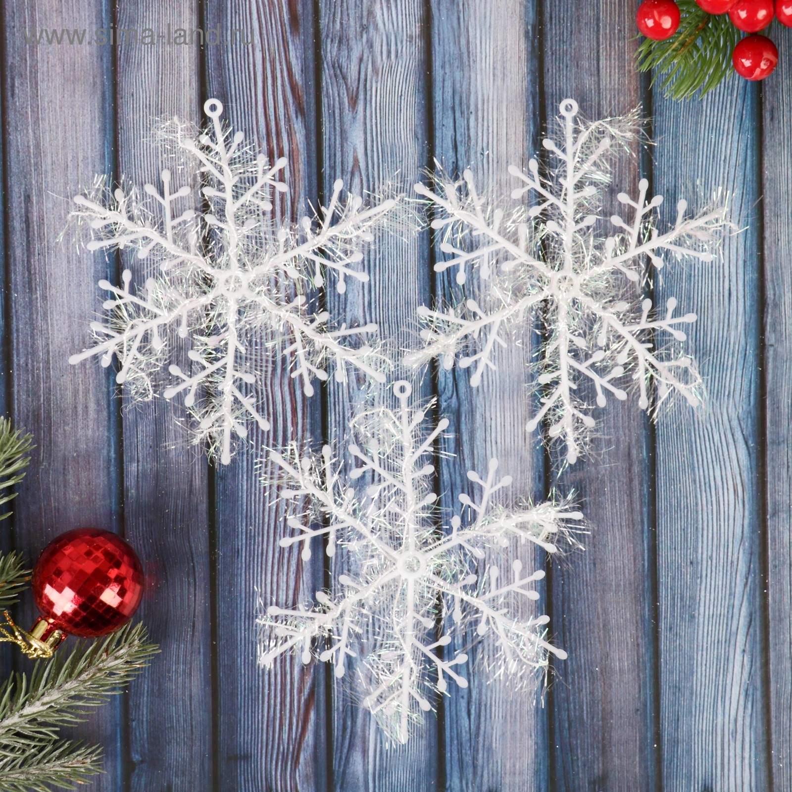 Подвеска пластик Снежинка 2372114 Пышная набор 3шт