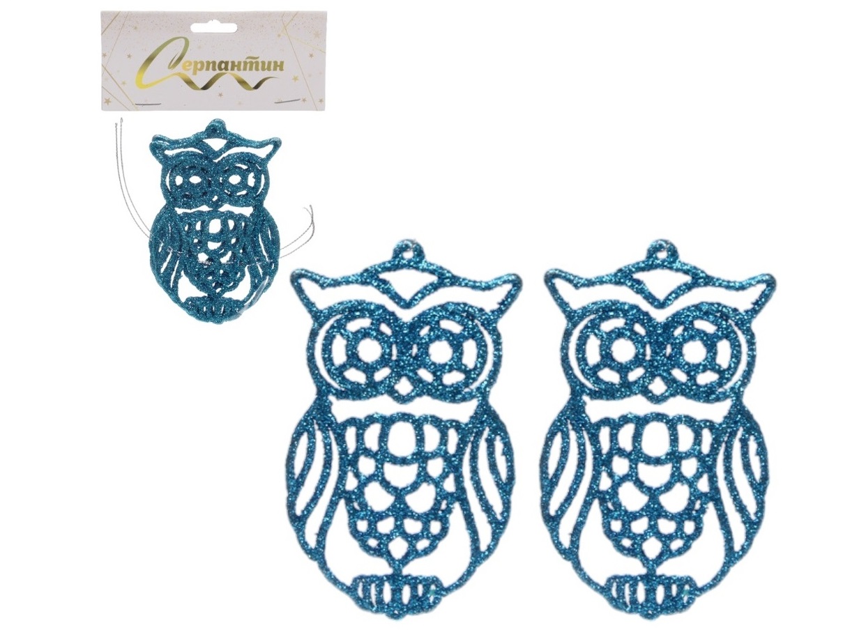 - Подвеска пластик Мудрая сова голубой 10см набор 2шт 201-3542