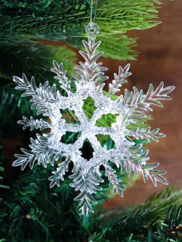 Подвеска пластик Снежинка серебро 12см НУ-5114