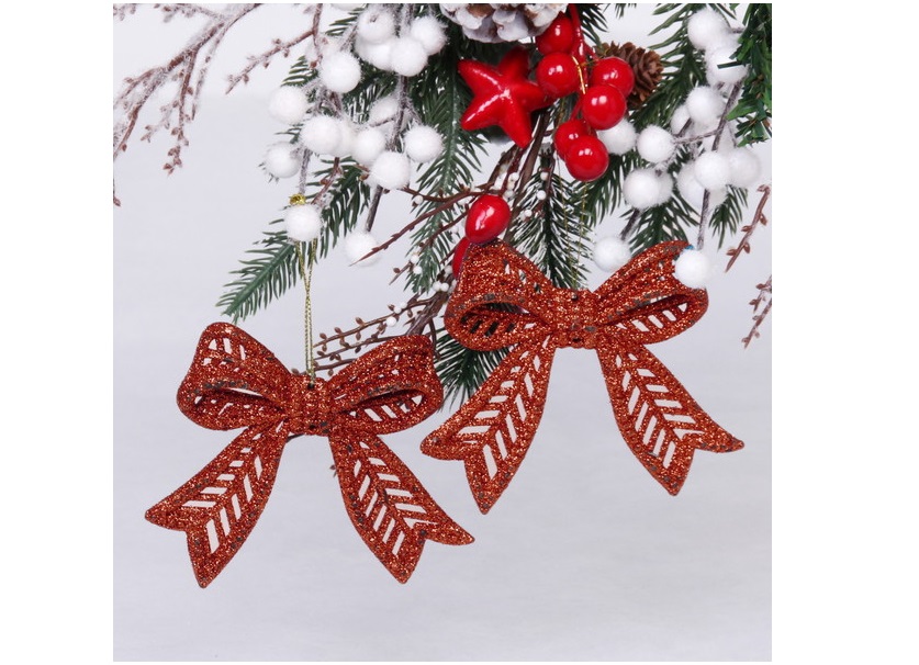 - Подвеска пластик Сказочные бантики красный набор 2шт 9*11см 201-2258
