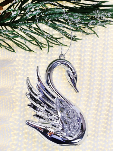 - Подвеска пластик Лебедь серебро 10*8смНУ-5090