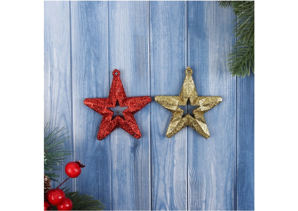 - Подвеска пластик Звезда блеск золото/красная 7*6,5см 2шт 10514239