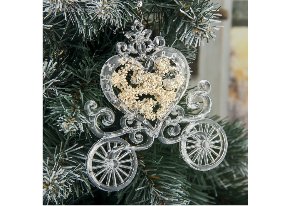 Подвеска пластик Карета 3576028 12см с блеском прозрач. 1шт