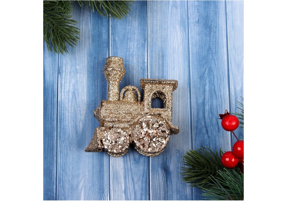 - Подвеска пластик Паровозик блеск золото 9*8см 10514234