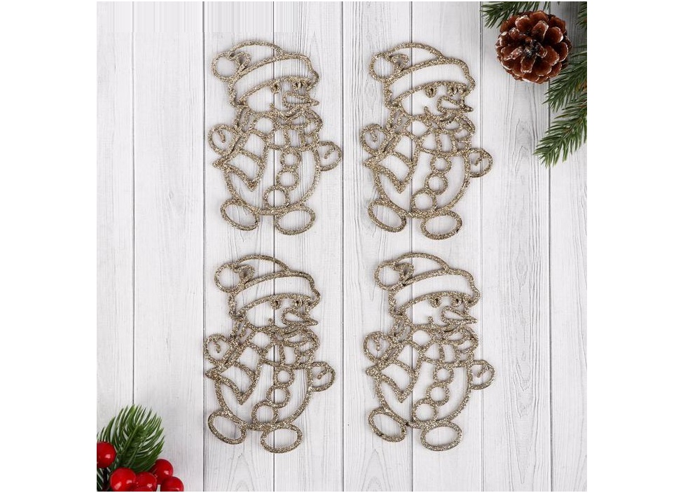 Подвеска пластик Снеговик 5043698 золото 4шт