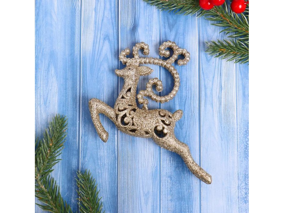 - Подвеска пластик Олень 6947604 бегущий золото 11см
