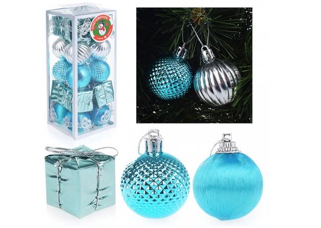 - Набор новогодних украшений S0126-3 шары, подарки. голубой