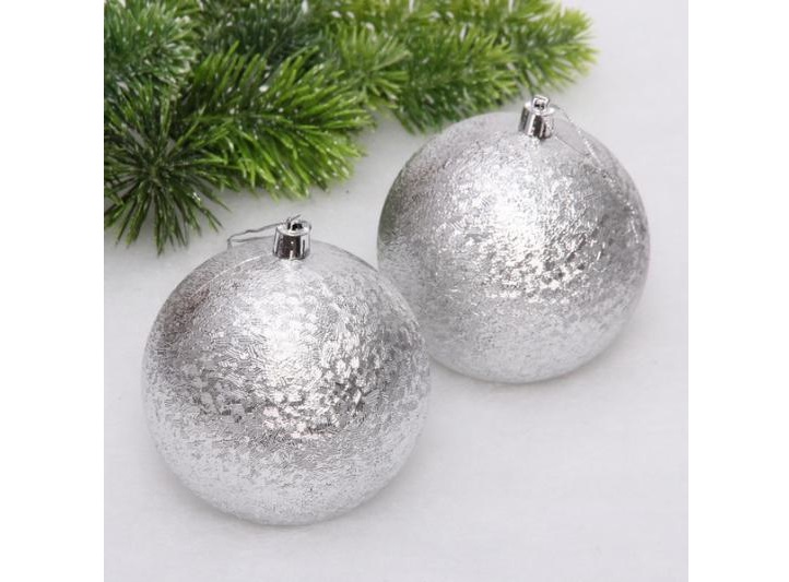 Набор шаров 4см 183-844 Микс фактур серебро 6шт
