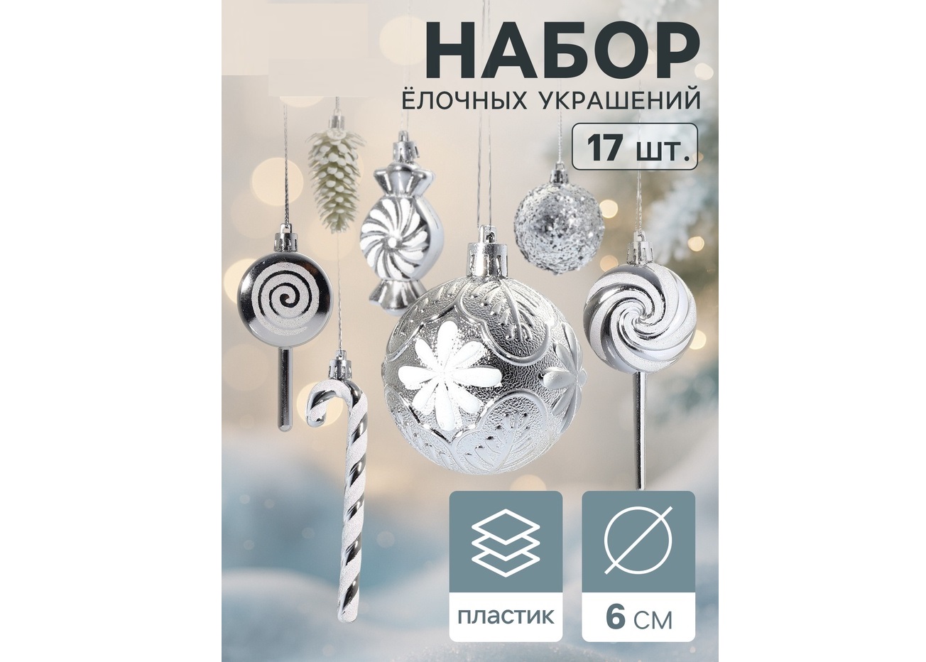 - Набор новогодних украшений 10870236 Ярмарка волшебства серебро 17шт