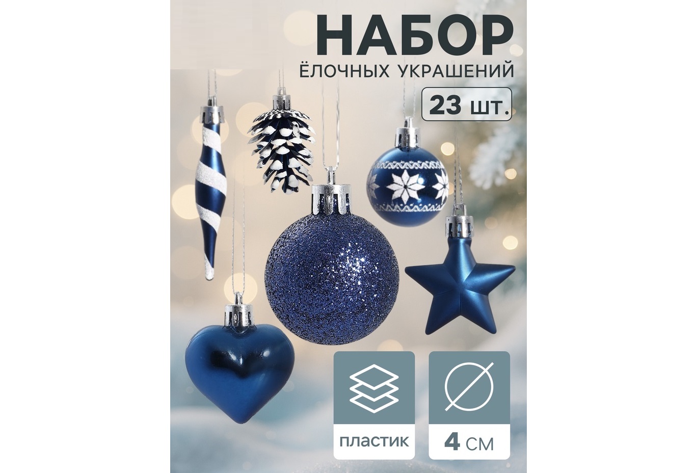 Набор новогодних украшений 10870241 Праздничный хоровод синий 26шт
