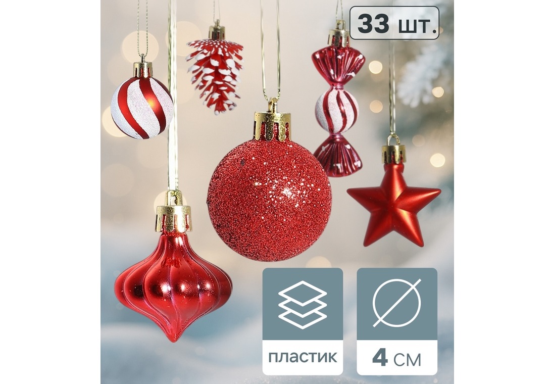 Набор новогодних украшений 10870242 Праздничный хоровод красный 33шт