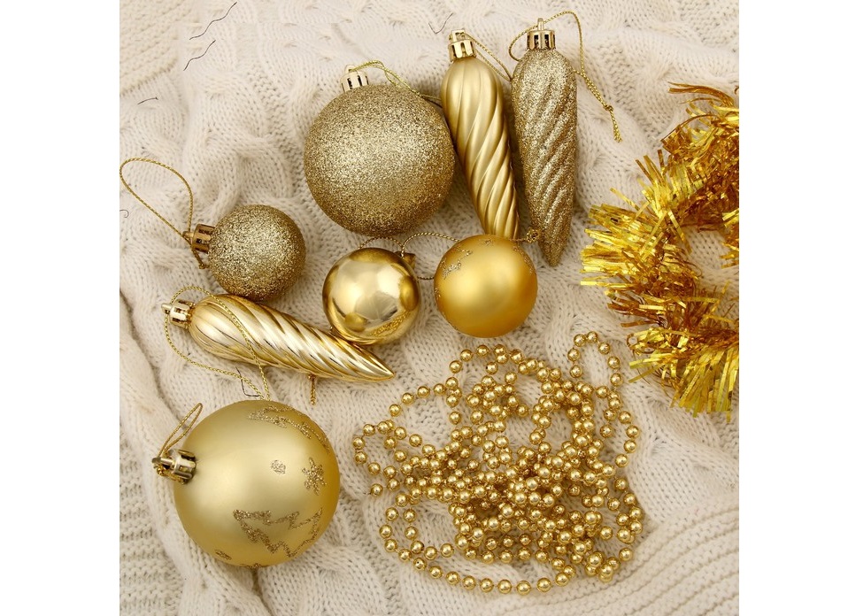 - Набор новогодних украшений 4192767 Новогоднее веселье золото 26шт