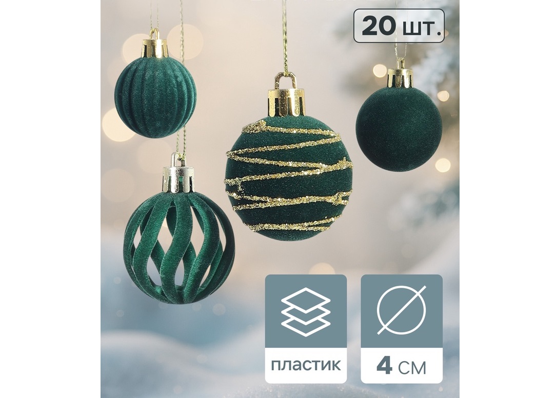 - Набор шаров 4см 10870248 Бархат. Феерия зеленый 20шт