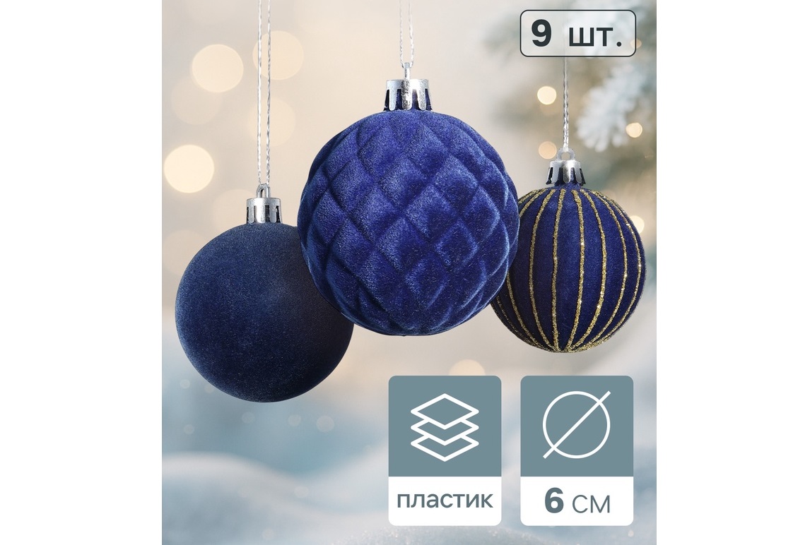 - Набор шаров 6см 10870256 Бархат. Карнавал синий 9шт