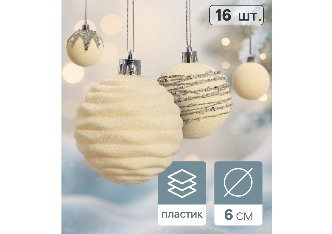 - Набор шаров 6см 10875292 Бархат. Маскарад белый 16шт