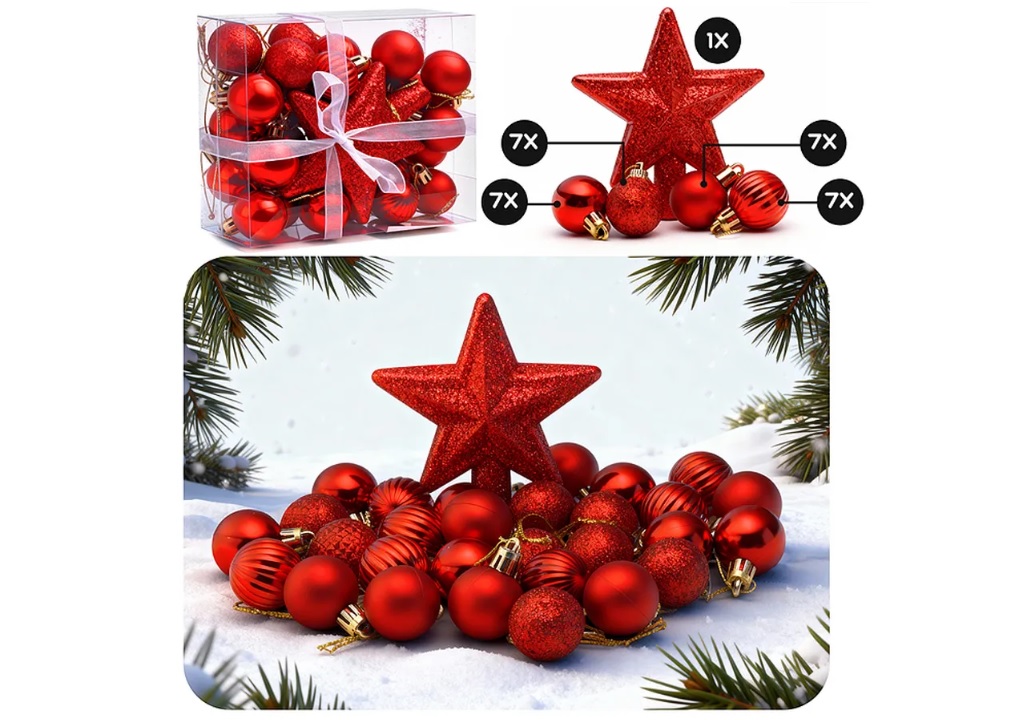 Набор новогодних украшений 10870242 Праздничный хоровод красный 33шт