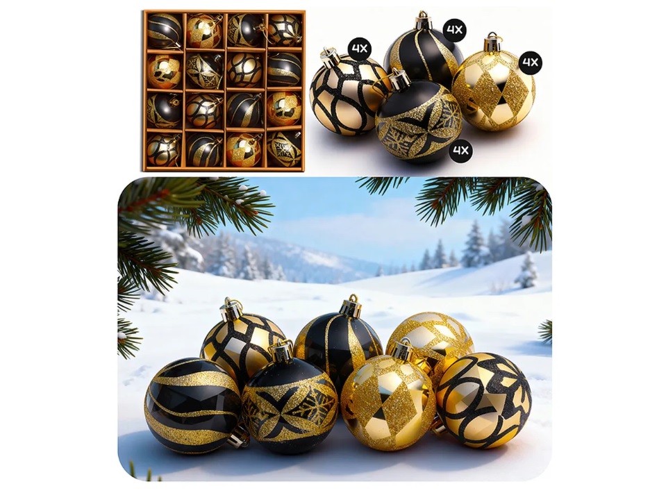Набор новогодних украшений S1664 Новогодние забавы золото 4см*16шт