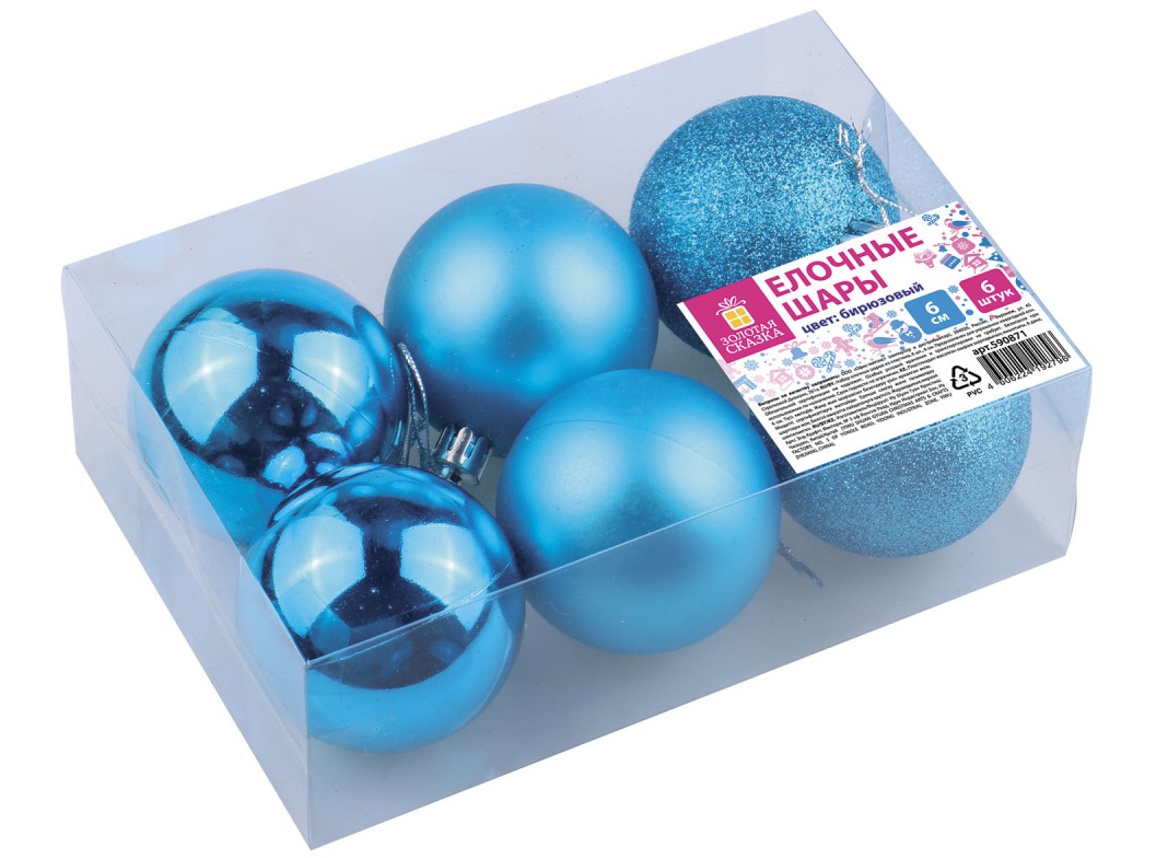 - Набор шаров 6см 590871 бирюзовый 6шт