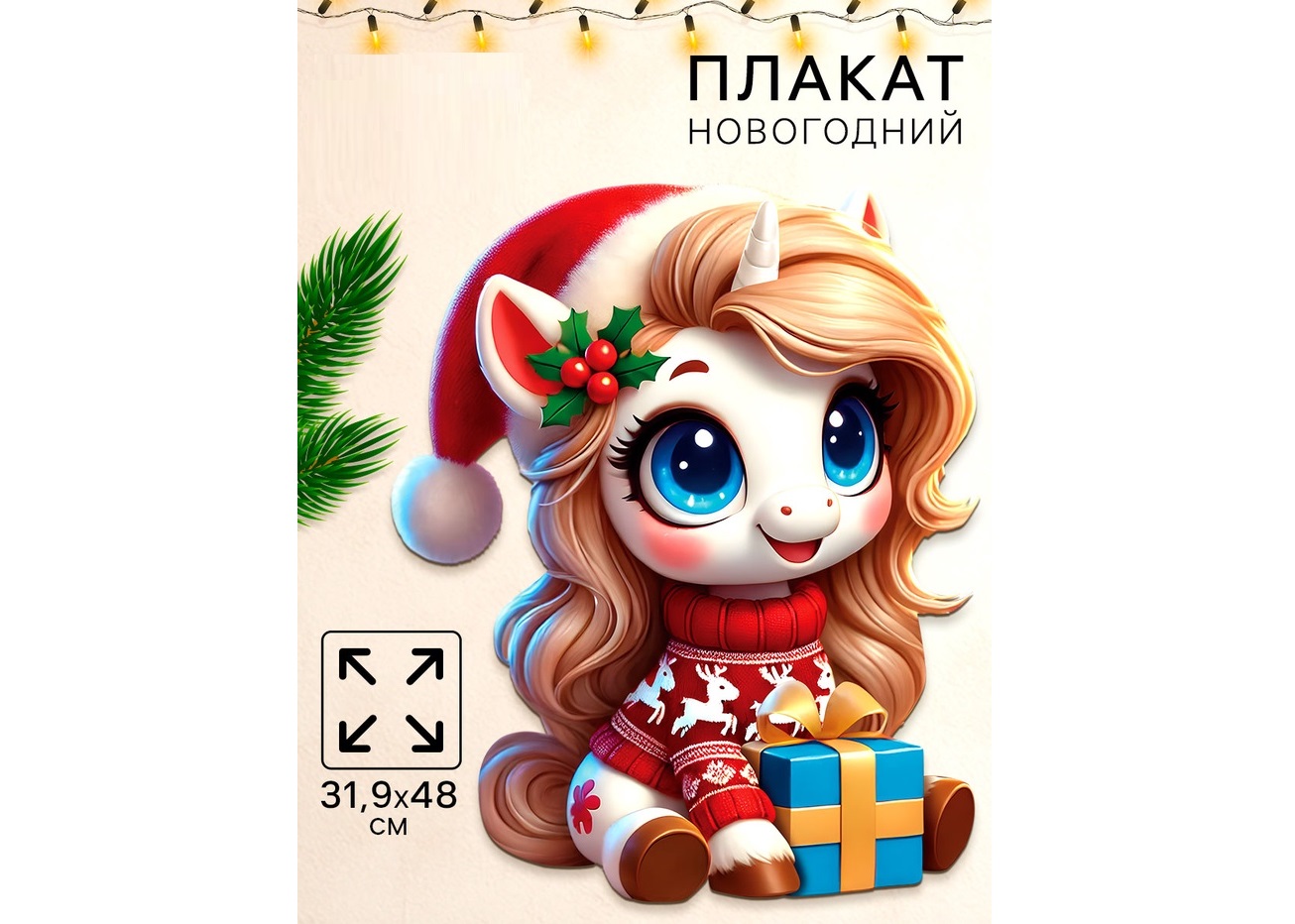 - Плакат С Новым годом, лошадка с подарком 10882906