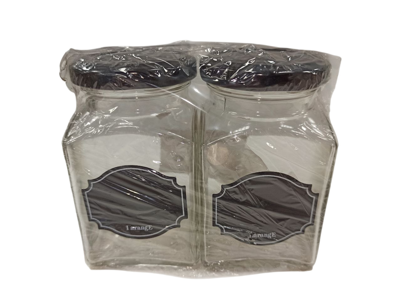 - Набор банок для сыпучих стекло 2пр с металлической крышкой, ложкой+мел 00315-08722/1538