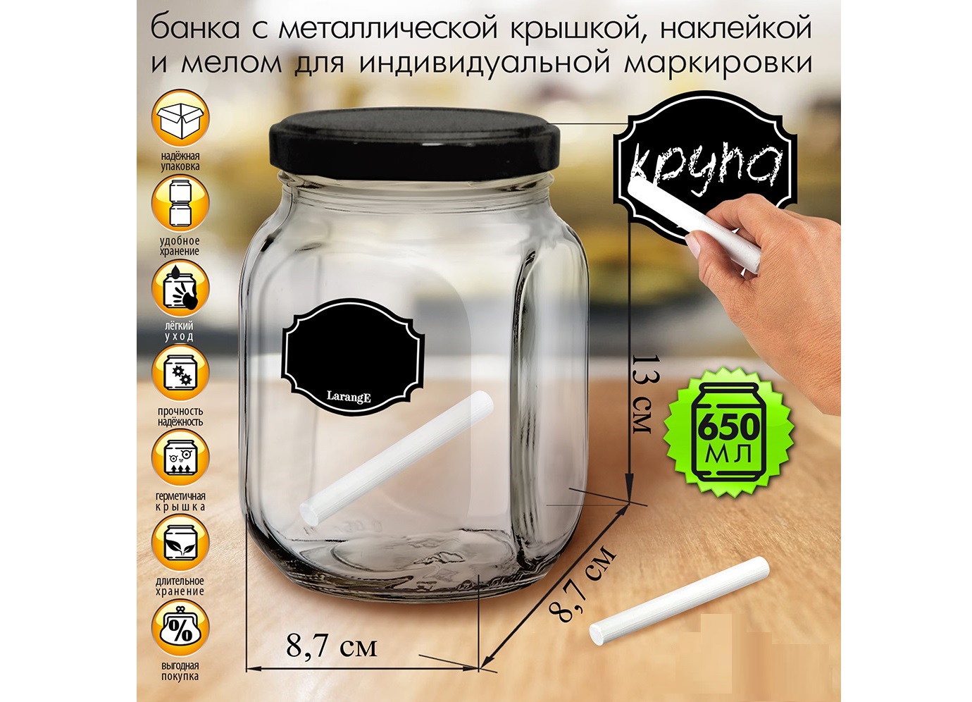 - Банка для сыпучих стекло 0,65л 00815-00872/1675 ложка+мел