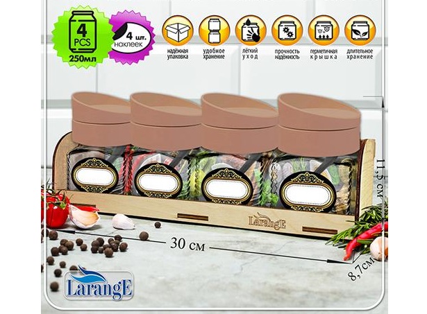 - Набор банок для сыпучих стекло 4пр Какао с крышкой дозатором 00276-00001/8763