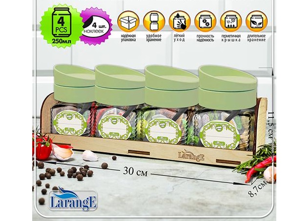 - Набор банок для сыпучих стекло 4пр Нежно-мятный с крышкой дозатором 00273-00001/8749