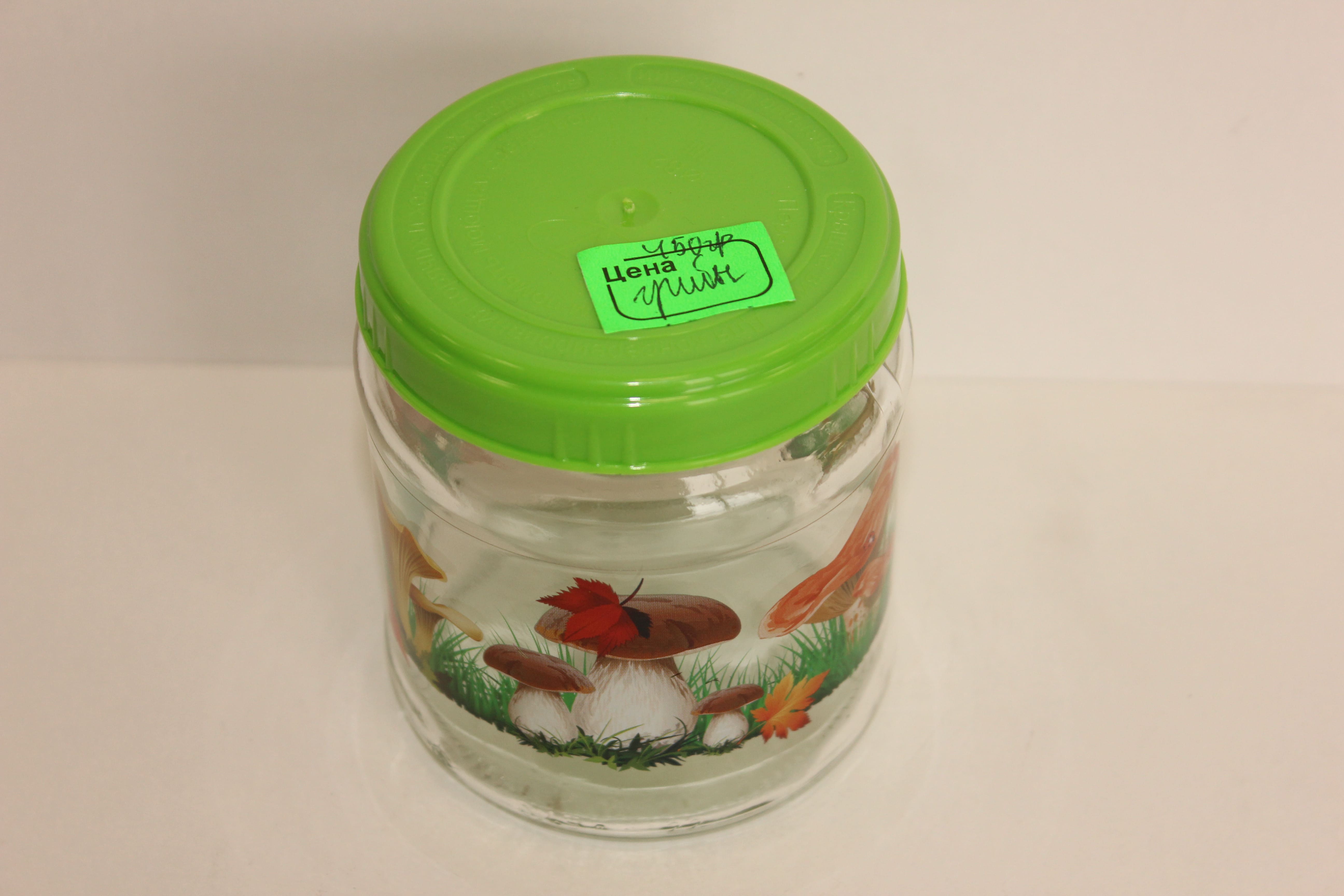 Банка для сыпучих стекло 650мл Грибы с железной крышкой