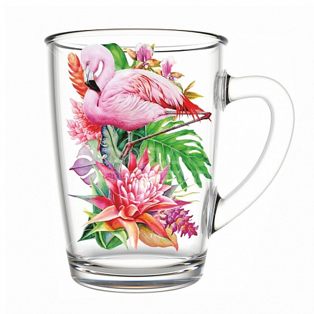 Кружка стекло 300мл 334-д Фламинго в тропиках