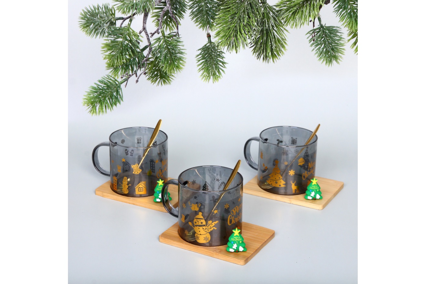 - Кружка стекло 250мл 891-0627 Зимняя сказка на бамбуковой подставке